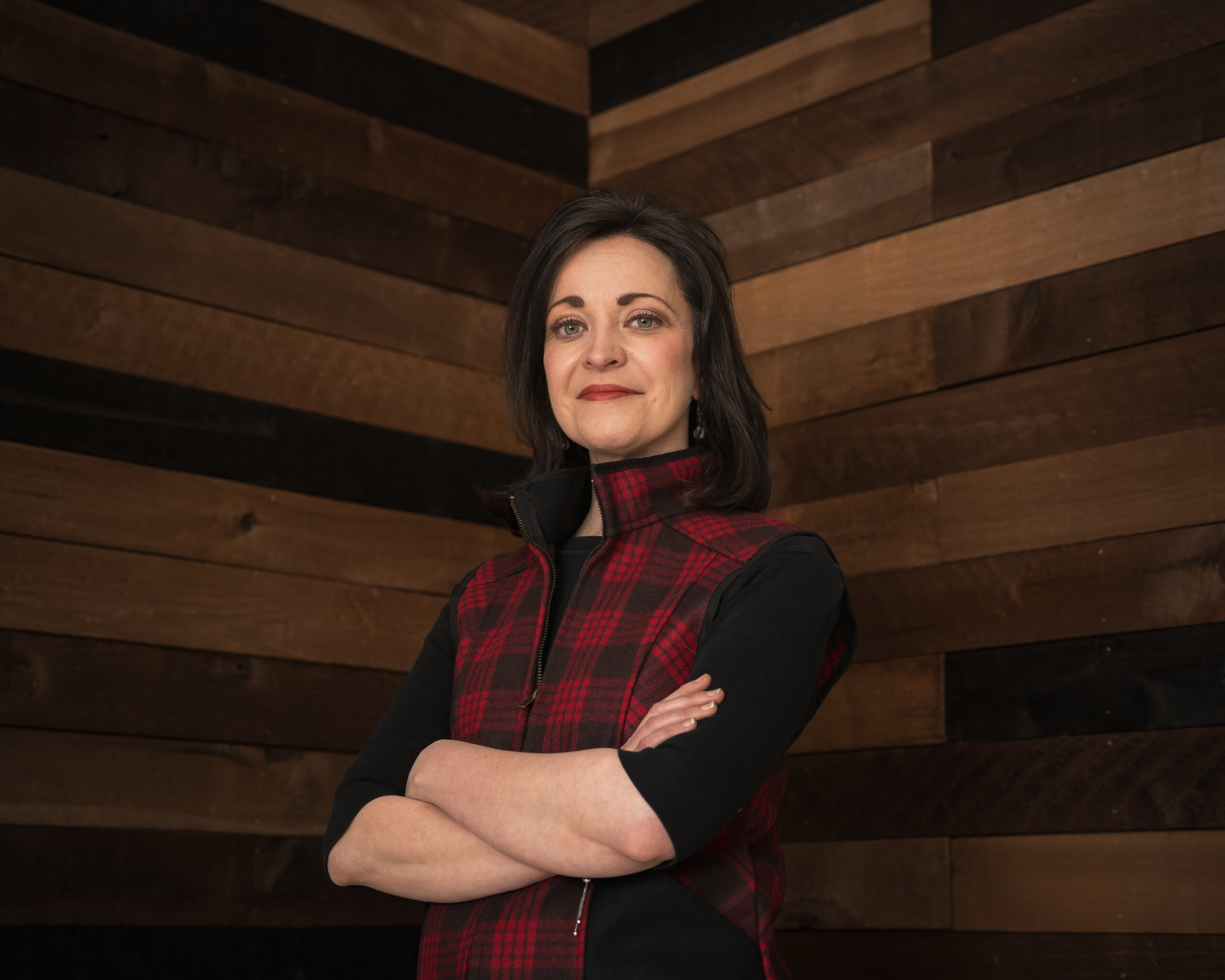 Gina Thorsen, the new president of Stormy Kromer, wanted fresh headshots for not only her social media profiles but also for media stories. This headshot was used in a Forbes article. Photo by collective member John Scheibe.